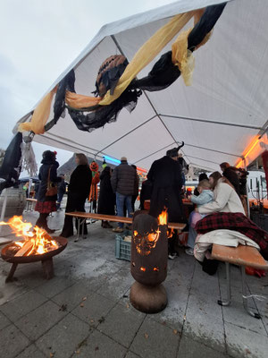 Grâce à l’initiative et à l’organisation de Cathy Fesselet, notre stand proposait des cervelas grillés au feu de bois, des marshmallows fondants sur le brasero et de quoi réchauffer aussi bien les mains que les sourires. La tente et les braseros ont permis de créer un vrai coin de convivialité où de nombreuses personnes se sont arrêtées, malgré le temps.