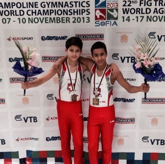 La paire synchrone 13-14 ans Yann Amsler /Sébastien Lachavanne (Trampoline Club Haut-Léman/ Chêne Gymnastique Genève) a commencé très fort le samedi 16 novembre 2013 aux Compétitions mondiales des groupes d’âge (CMGA). Les deux Romands qui s’entraînent au Centre régional de performance (CRP) d’Aigle ont réalisé une performance de pointe en décrochant un 9,6 pour la synchronisation lors des qualifications –et une magnifique deuxième place. La (légitime) nervosité qui s’est emparée d’eux avant la finale s’est répercutée sur leur exercice, mais les deux garçons se sont bien battus. Et ont terminé à un troisième rang largement mérité.