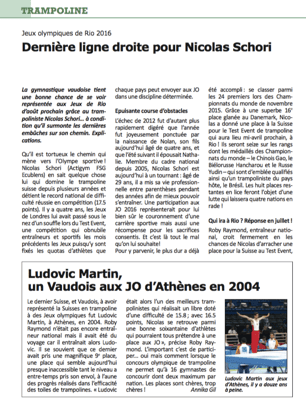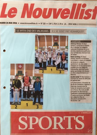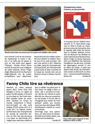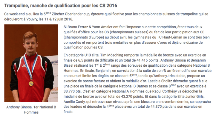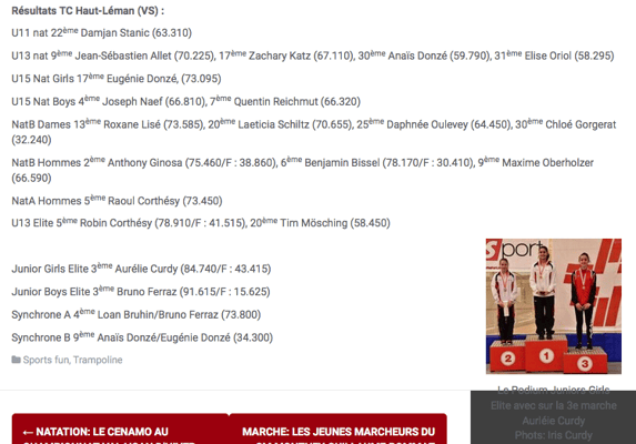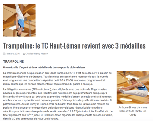 Capture d'écran de l'article paru sur le site Sport Chablais, 15 octobre 2016
