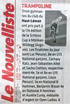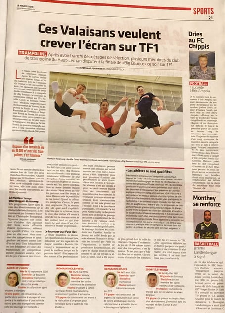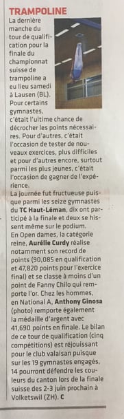 Article sur le Championnat romand de trampoline sur le site de Sport-Chablais